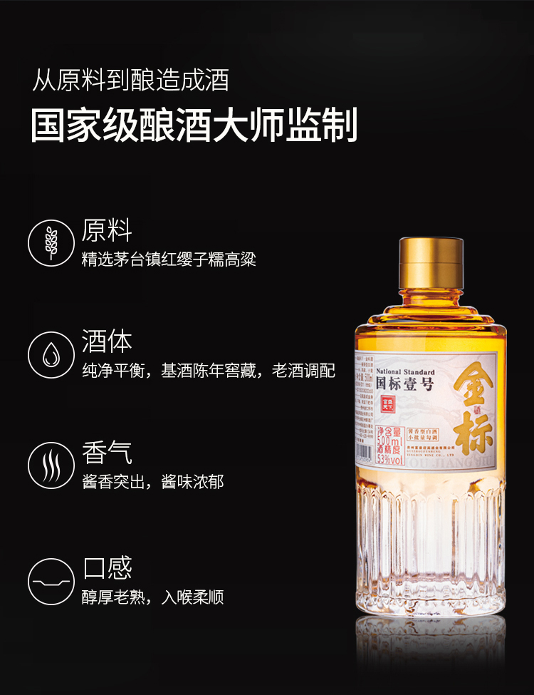 金標·國標壹號,首款遵循新國標釀造的內部酒體,高標準,高年份,零添加劑!