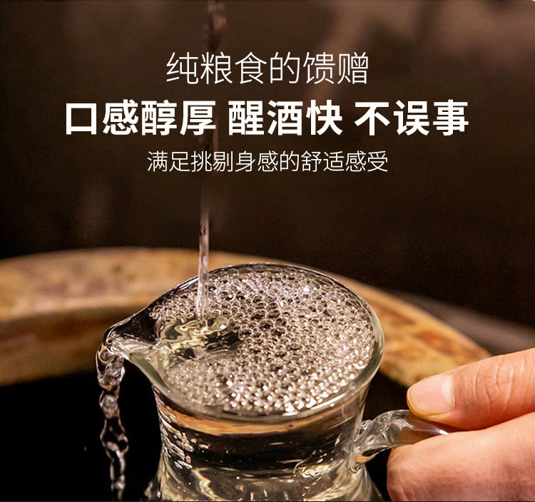 酒體清透,老酒自然微黃,不含添加劑,肉眼可見的好品質!