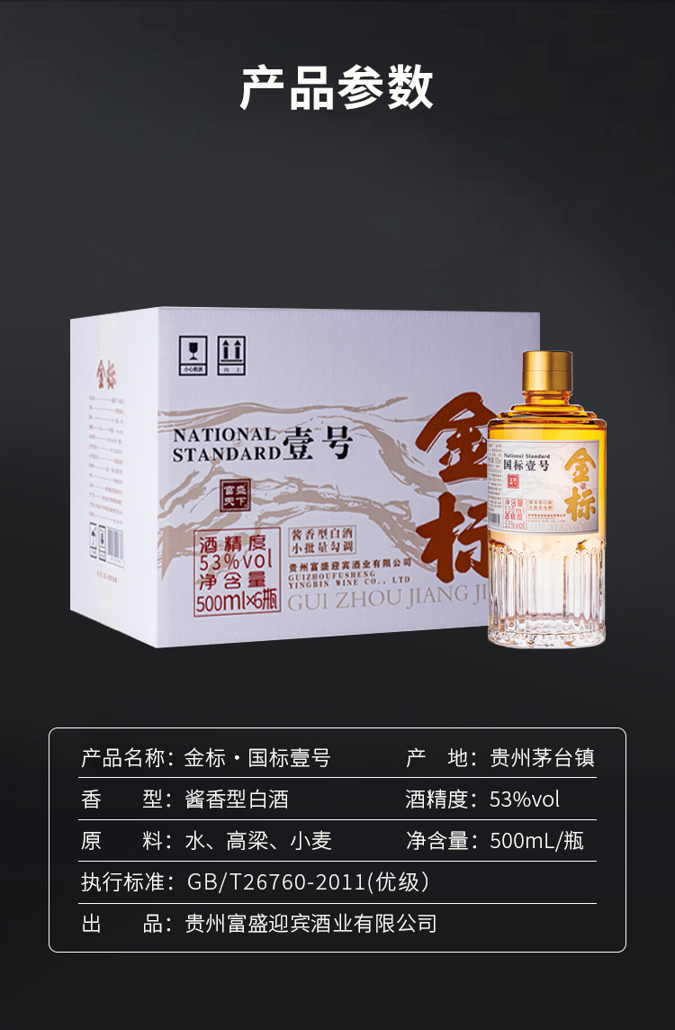 旁印有國標壹號的中英文拼寫,表明這是第一款按照新國標釀造的酒體。